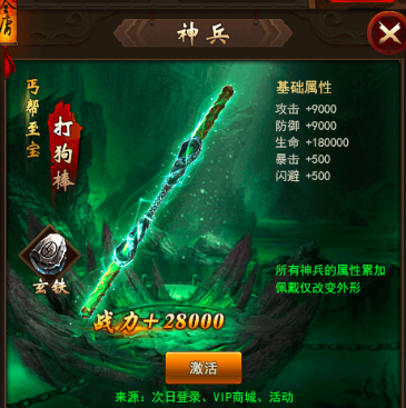 2、激活神器:完成相关任务,激活相应神器。增加玩家战斗力